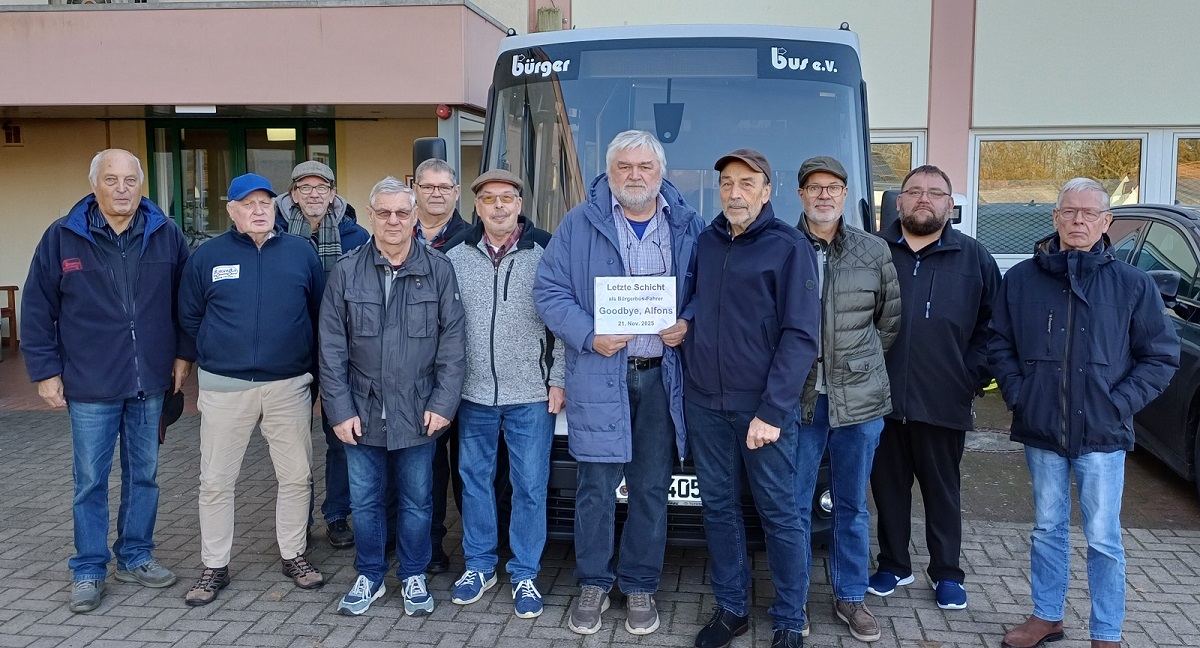 Nach 5-jährigem und umfangreichem Einsatz am Steuer des Bürgerbusses scheidet Alfons Mechlinski mit dem 21.11.2025 aus dem Fahrerlager aus; bleibt dem Verein aber als Vorsitzender erhalten.